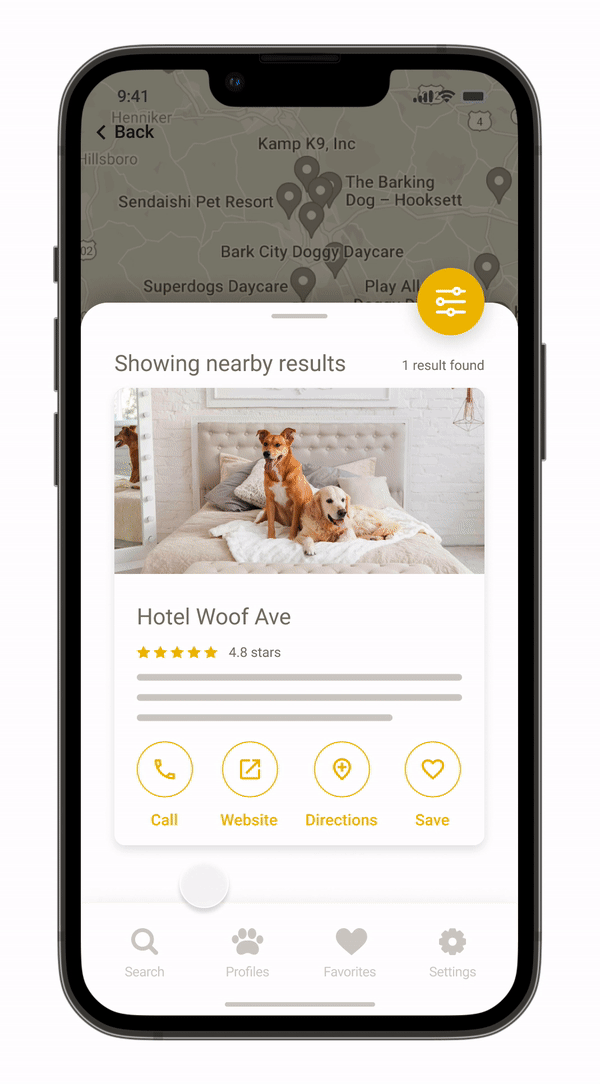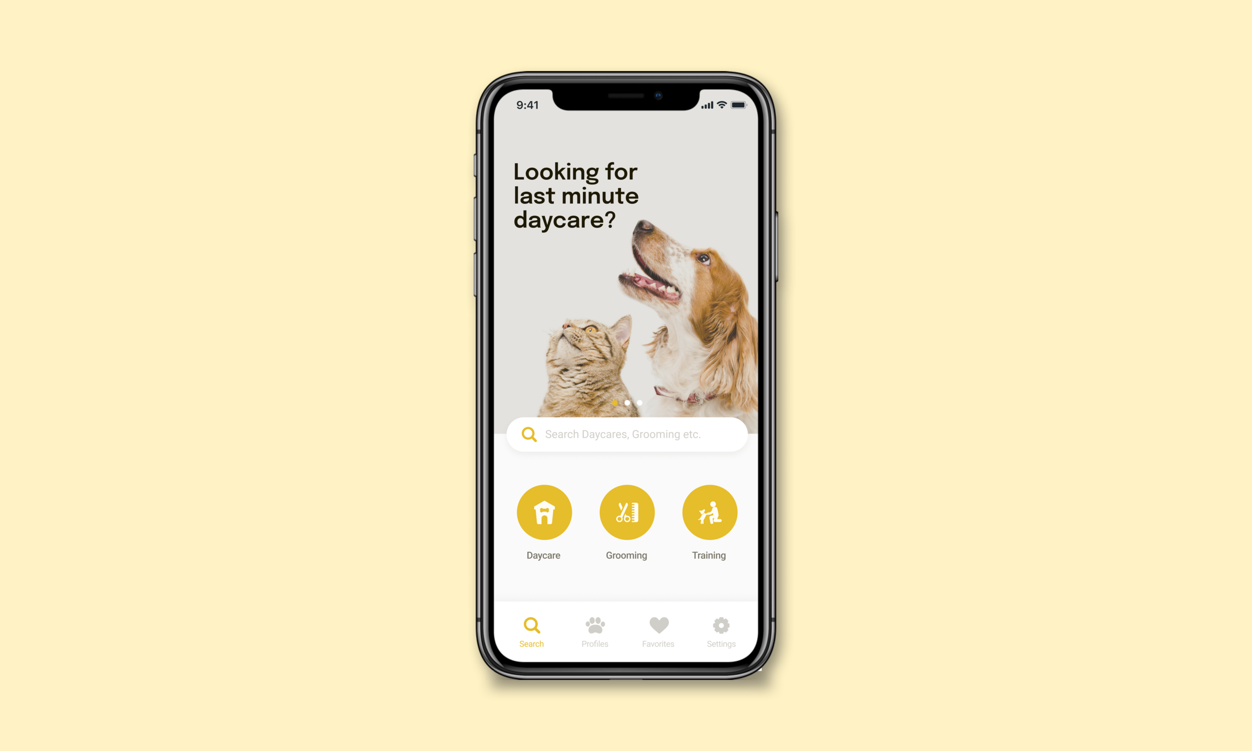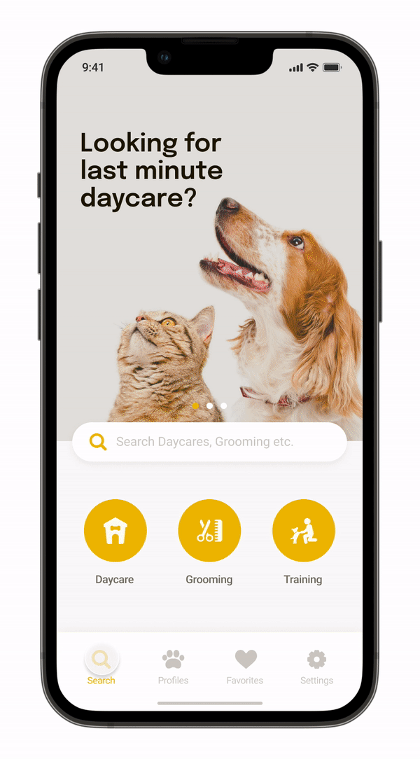 Users don’t need to create an account to be able to search. They can easily select the pet service category, such as “Daycare”, on the home screen.